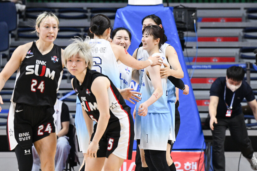 이날은 평소보다 훨씬 많은 3점슛 11개를 집중시켰다. 신지현과 신이슬이 9개를 합작했다. 물론 BNK에게 3점슛 12개를 내줬지만, 리바운드도 38-29로 우위를 점해 경기 시작 이후 단 한 번도 역전을 당하지 않았다.
