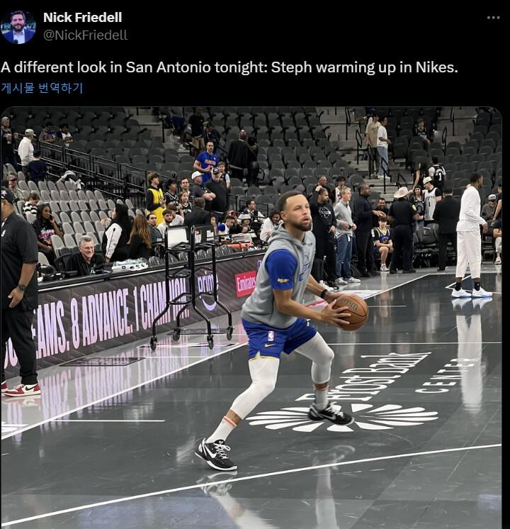 커리는 경기에 앞서 몸을 풀고 있는 것만으로도 현지 언론으로부터 주목을 받았다. 준비 과정은 새삼스러울 게 없었지만, 그가 코비 브라이언트의 시그니처 농구화 코비6를 신고 워밍업을 한 것은 그야말로 ‘빅뉴스’였다. 현지 언론들을 비롯해 ‘ESPN’에서 골든스테이트 워리어스 담당을 맡고 있는 닉 프리델 기자도 흥미롭다는 반응을 보였다.