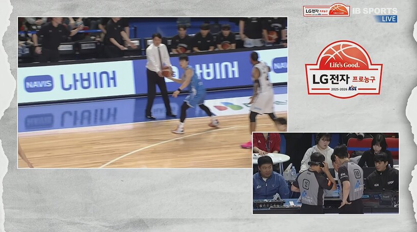 3쿼터에서도 흔치 않은 장면이 또 나왔다. 7분 5초를 남기고 유기상이 3점슛을 성공했다. 유기상의 3점슛을 지켜본 심판은 3점슛 성공 수신호를 했다. 6분 44초를 남기고 양준석이 김진유에게 파울을 당했다. 이 때 심판들은 유기상의 3점슛 여부 판독에 들어갔다.