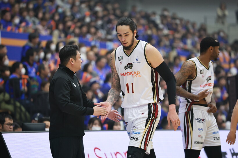 24일 일본 이바라키현 히타치시 이케노카와 사쿠라 아레나에서 열린 B리그 2025-2026시즌 정규리그 이바라키 로보츠와 코시가야 알파스의 맞대결. 반가운 얼굴이 오랜만에 코트를 밟았다. 카이 소토가 그 주인공.