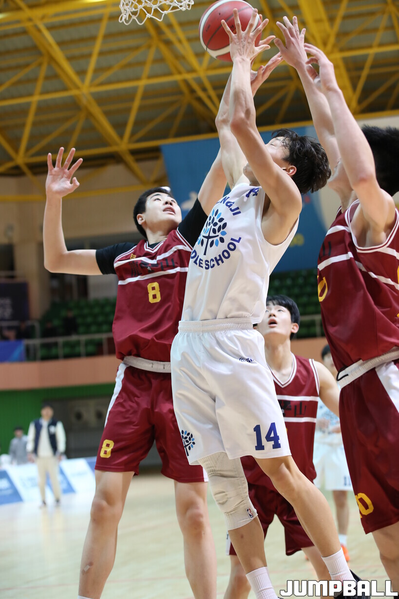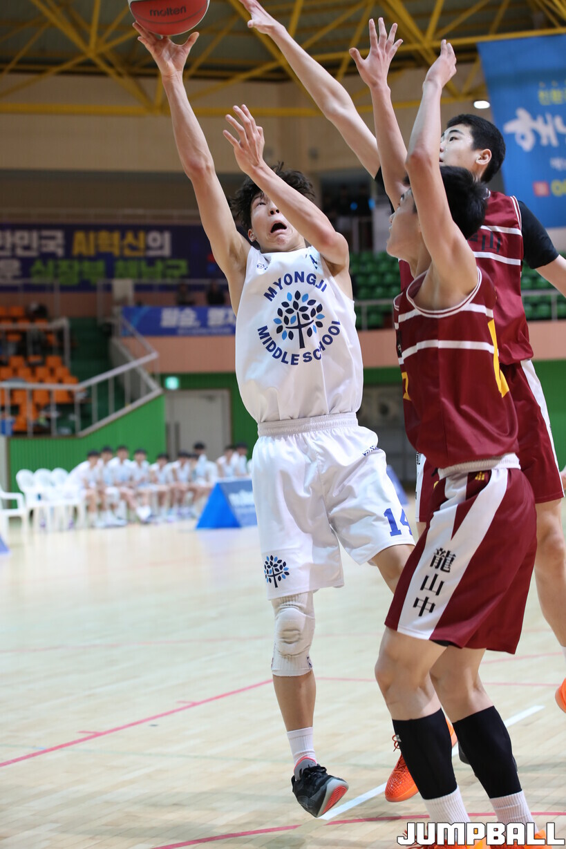 22일 전남 해남 우슬체육관에서 열린 제63회 춘계전국남녀 중고농구연맹전 남중부 준결승전 경기, 용산중이 내,외곽의 조화의 우위와 후반 집중력을 발휘해 83-59로 명지중을 꺾고 결승전에 진출했다.