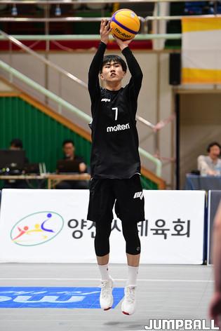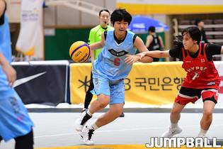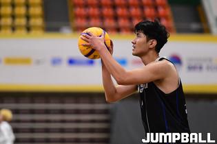 [점프볼=양산/박상혁 기자] 26일 양산실내체육관에서 열린 'KB국민은행 LiiV 3X3 코리아투어 2020 양산대회' 2일차 경기, 남자오픈부 아잇스포츠가 점프슛을 시도하고 있다.