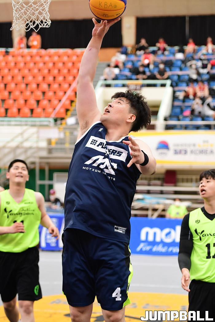 [점프볼=양산/박상혁 기자] 26일 양산실내체육관에서 열린 'KB국민은행 LiiV 3X3 코리아투어 2020 양산대회' 2일차 경기, 남자오픈부 모션스포츠 박준수가 골밑에서 슛을 시도하고 있다.