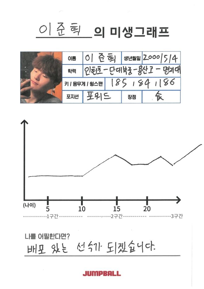 이준혁은 시즌 종료 후 개인 운동과 픽업 게임 등을 통해 컨디션을 유지하고 있다. 농구를 통해 희로애락을 겪으며 한층 성장한 이준혁이 프로 유니폼을 입고 마침내 웃어 보일 수 있을지 주목해보자.