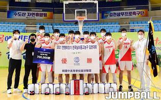22일 경상북도 김천실내체육관에서 열린 2021 연맹회장기 전국남녀중고농구대회 김천대회 여중부 청솔중과 수피아여중 결승전 경기, 수피아여중 김사랑이 골밑으로 들어가고 있다.