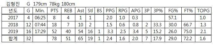 고려대 주희정 감독은 “드리블, 돌파, 패스 능력은 타고 났다. 단점이 볼을 흘려서 실책이 많다”고 김형진의 장단점을 설명했다. 김형진의 장단점을 기록이 그대로 말해주고 있다.