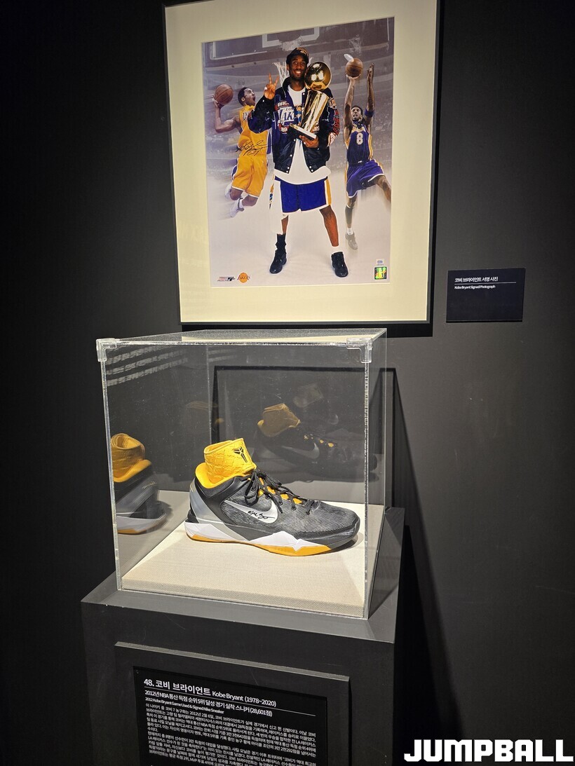 이번 전시회의 주인공은 코비였다. LA 레이커스 시절 유니폼, 농구화부터 미국 국가대표로 출전해 따냈던 올림픽 금메달, 카드, 피규어에 이르기까지 코비의 발자취를 한눈에 볼 수 있는 코너가 마련됐다. 스테픈 커리가 2016 올스타게임 연습 유니폼에 ‘코비의 마지막’이라는 문구와 함께 자신의 사인을 남기며 존경심을 표한 것도 기억에 남는 소장품 가운데 하나였다.