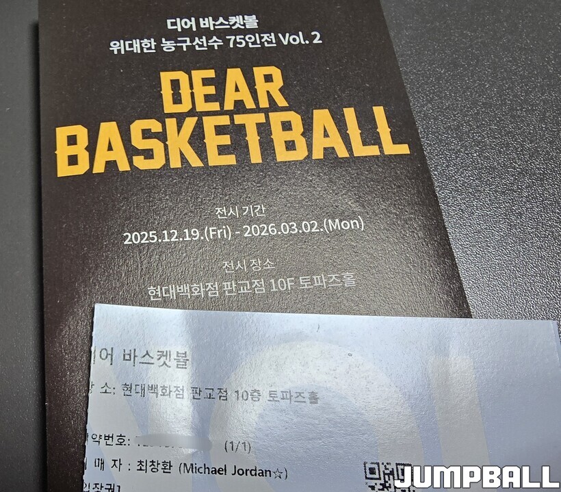 후속작이라 할 수 있는 ‘위대한 농구선수 75인전 vol.2’는 입장할 때부터 깨알 같은 포인트가 있었다. 티켓 발권 시 내 이름 바로 옆에 원하는 NBA 선수의 이름도 함께 넣을 수 있었다. 말해 뭐해. 제일 먼저 떠오른 그 이름, 마이클 조던을 새기고 전시회에 입장했다.