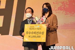 [점프볼=서울/박상혁 기자] 25일 여의도 63컨벤션센터 그랜드볼룸에서 'KB국민은행 Liiv M 2020 여자프로농구' 정규리그 시상식이 열렸다. BNK썸 구슬이 식스우먼상을 수상했다.