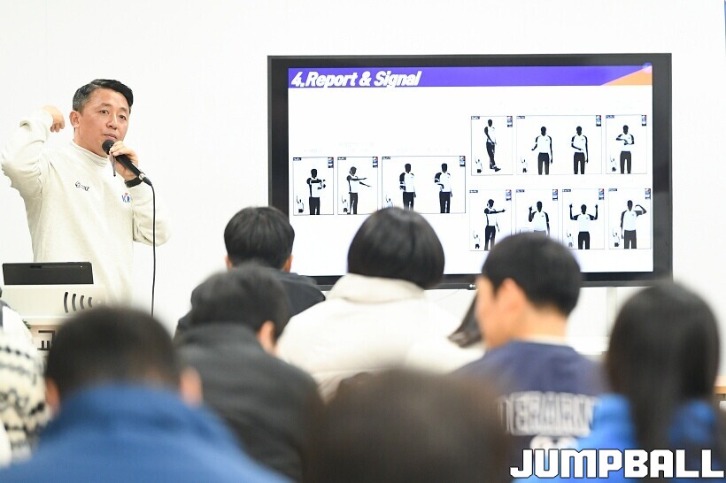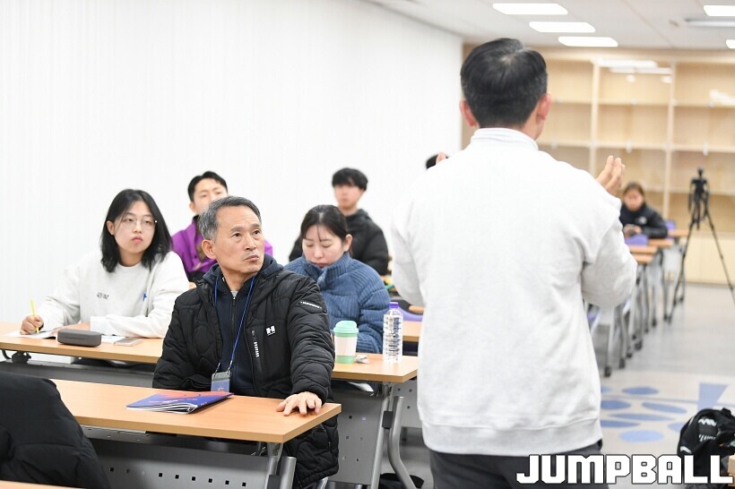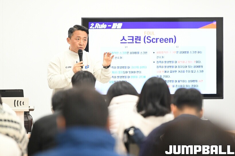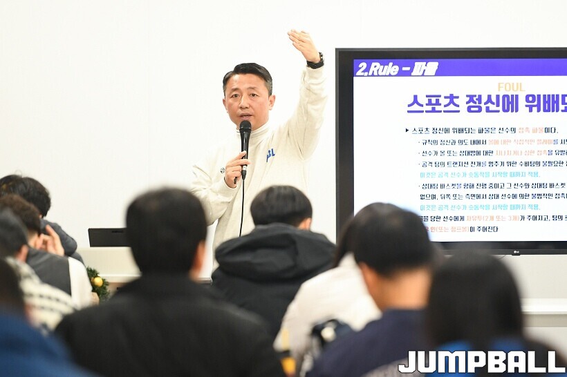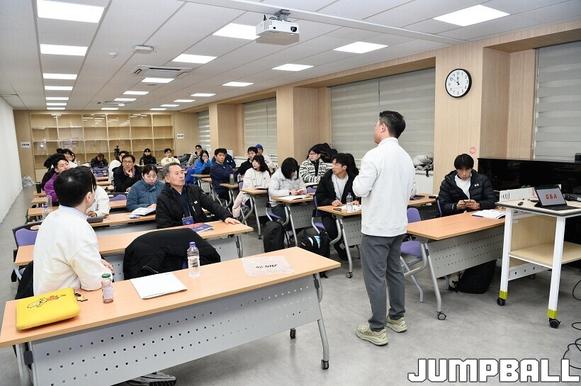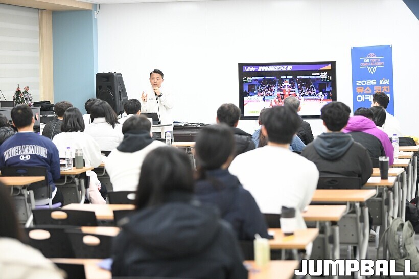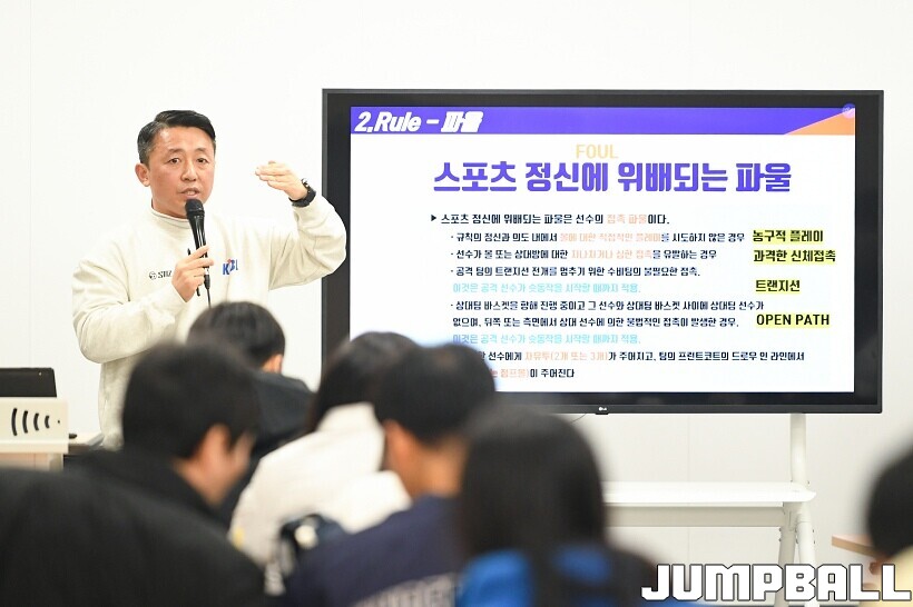 [점프볼=홍은/유용우 기자] 11일 명지고 체육관에서 2026 KBL 유스 코치아카데미 2기 2일차 교육이 실시됐다. KBL은 일반 학교 및 유소년 농구 현장에서 활동 중인 교사와 지도자들에게 전문적인 교육을 제공, 코칭 역량과 지도력을 향상시키는 것을 목적으로 KBL 유스 코치아카데미를 신설했다. 2기 아카데미에 선발된 40명의 교사들은 KBL 이승무 심판과 임진수 심판의 강의 들으며 농규 규칙에 대한 전반적 이해와 실직적인 클럽 경기에서의 응용과 농구 판정에 대해 의견을 나눴다.