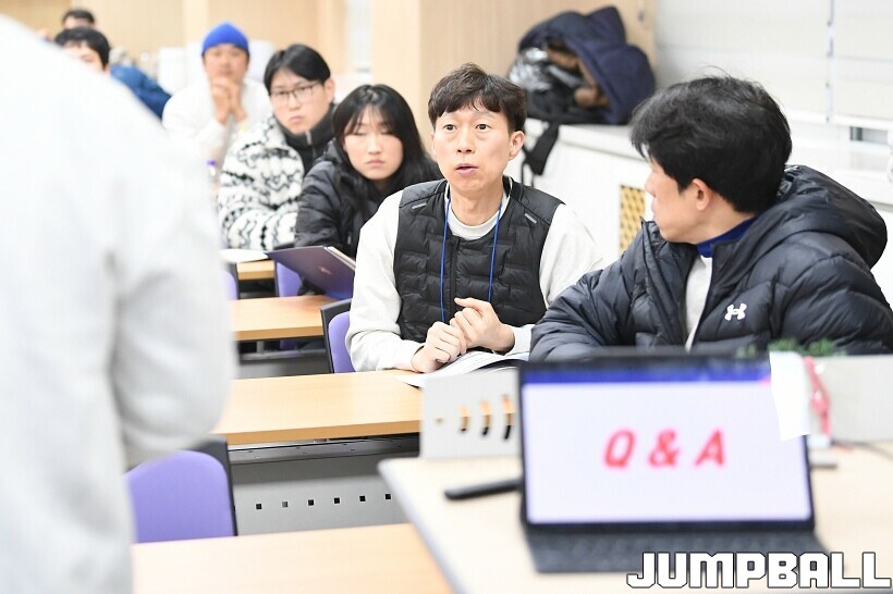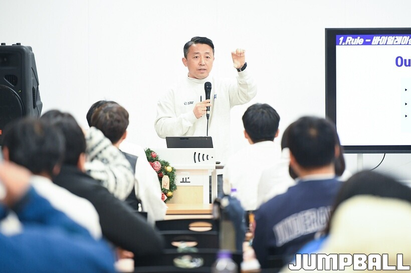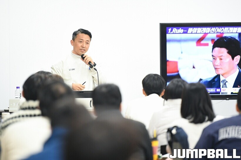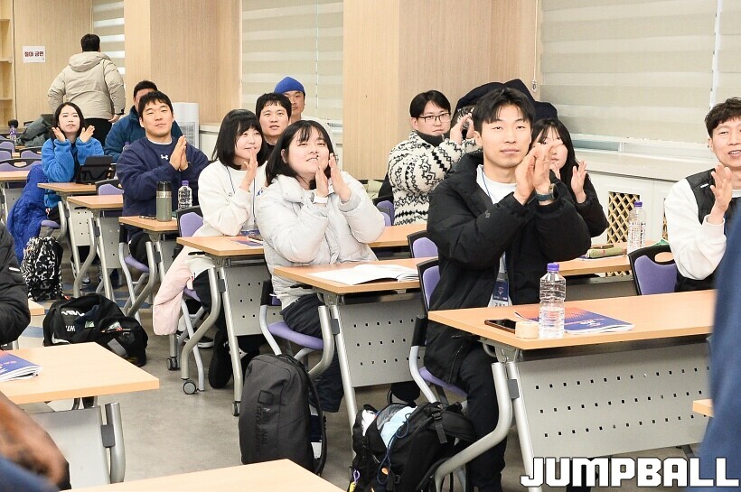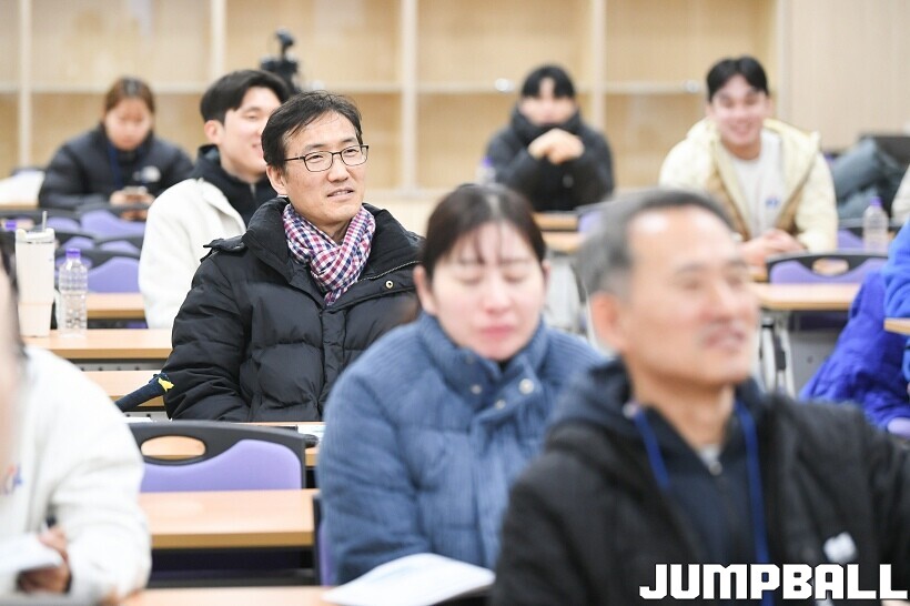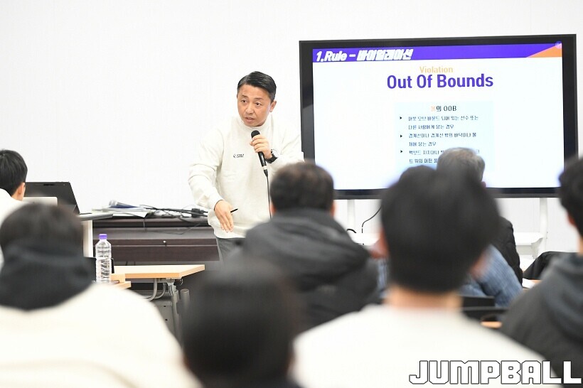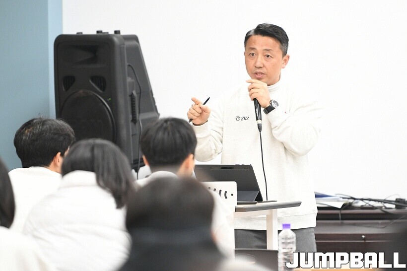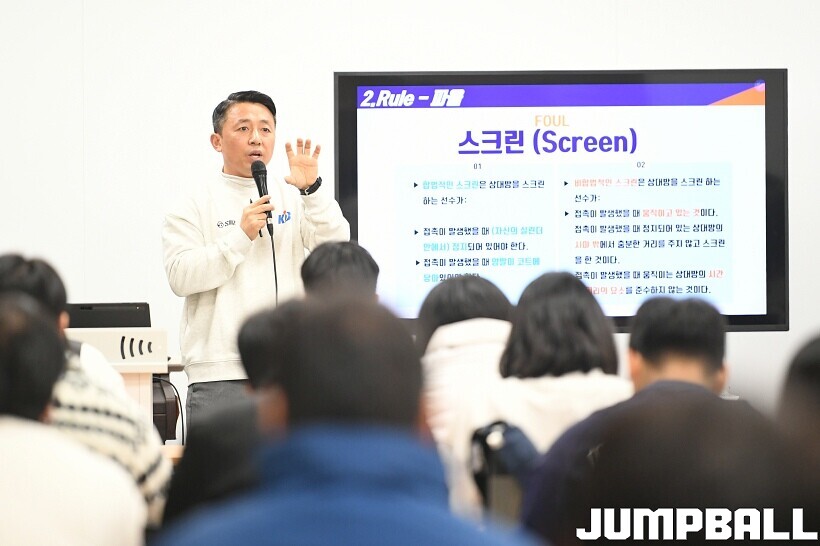 [점프볼=홍은/유용우 기자] 11일 명지고 체육관에서 2026 KBL 유스 코치아카데미 2기 2일차 교육이 실시됐다. KBL은 일반 학교 및 유소년 농구 현장에서 활동 중인 교사와 지도자들에게 전문적인 교육을 제공, 코칭 역량과 지도력을 향상시키는 것을 목적으로 KBL 유스 코치아카데미를 신설했다. 2기 아카데미에 선발된 40명의 교사들은 KBL 이승무 심판과 임진수 심판의 강의 들으며 농규 규칙에 대한 전반적 이해와 실직적인 클럽 경기에서의 응용과 농구 판정에 대해 의견을 나눴다.