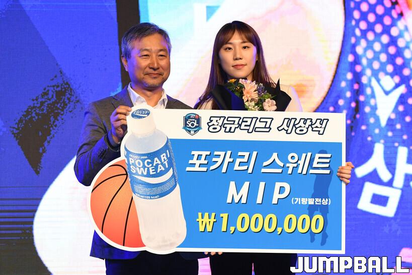 6일 여의도 63컨벤션센터 그랜드볼룸에서 열린 신한은행 SOL 2022-2023 여자프로농구 정규리그 시상식, 삼성생명 강유림이 포카리스웨트 MIP상을 수상했다.