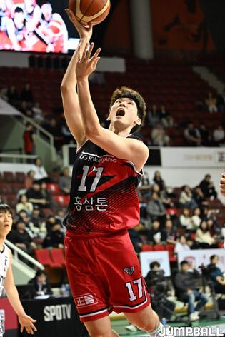 [점프볼=안양/유용우 기자] 13일 안양 정관장 아레나에서 열린 2023-2024 정관장 프로농구 안양 정관장과 고양 소노의 경기, 소노 한호빈이 경기를 리딩하고 있다.