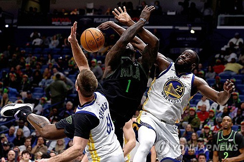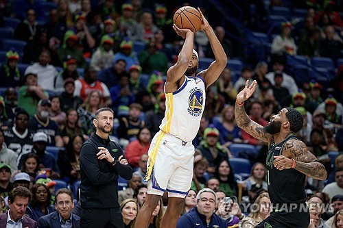 25일 미국 루이지애나주 뉴올리언스 스무디킹 센터에서 열린 NBA 2025-2026시즌 정규리그 골든스테이트와 뉴올리언스 펠리컨스의 맞대결. 골든스테이트가 주축 멤버들의 공백을 실감했다.