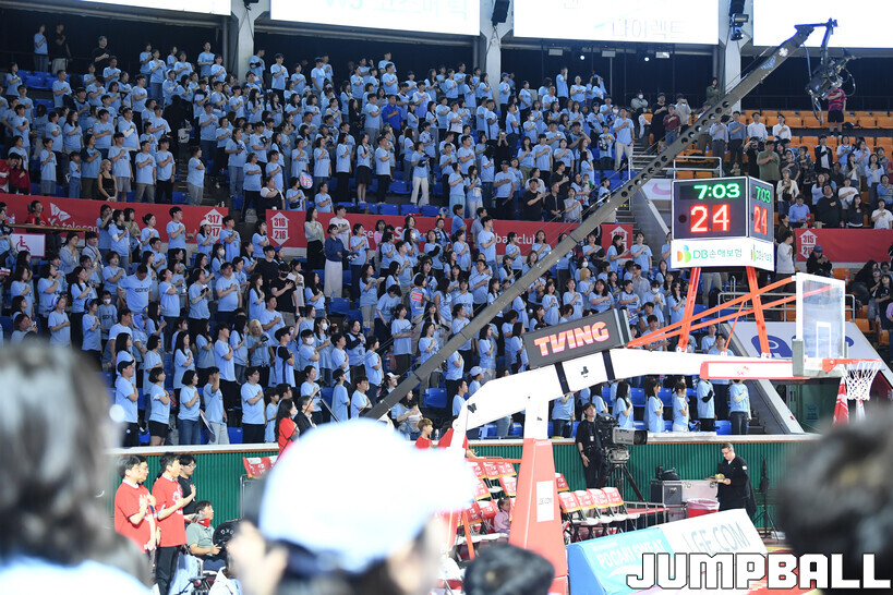 경기력만큼이나 눈길을 끈 건 잠실을 물들인 ‘하늘색 물결’이었다. 소노는 첫 ‘봄 농구’를 맞아 원정 응원단을 꾸렸고, 티켓은 2분도 채 되지 않아 매진되며 뜨거운 관심을 입증했다.