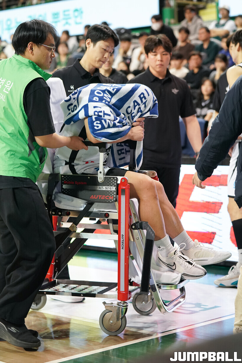 8일 원주 DB와의 2025-2026 LG전자 프로농구 정규시즌 원정경기에서 왼쪽 무릎을 다쳤던 카굴랑안은 9일 정밀 검진을 진행했다. “무릎 외측 인대에서 ‘뚝’ 소리가 났다고 한다. 검사를 받아 봐야겠지만, 좋지 못한 상태인 듯하다”라는 문경은 감독의 우려대로였다. 점프볼 취재에 따르면, 진단 결과는 전방십자인대 파열이었다.