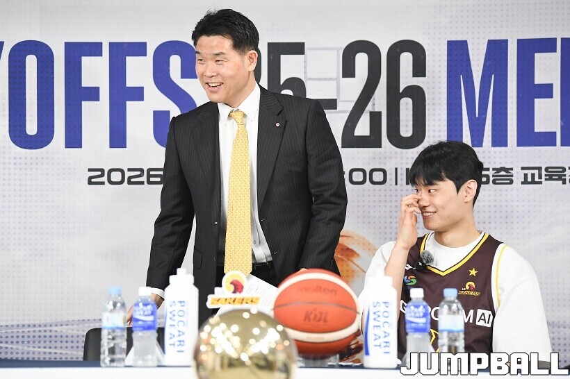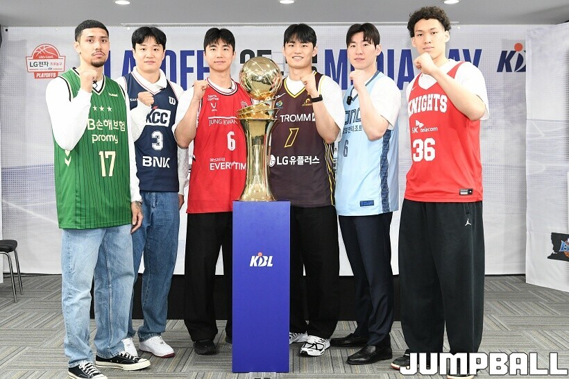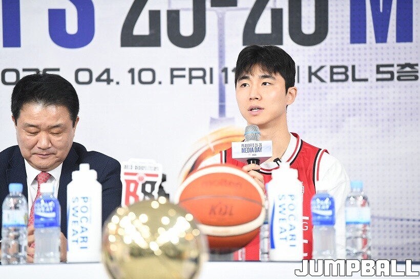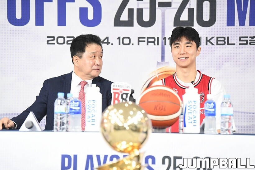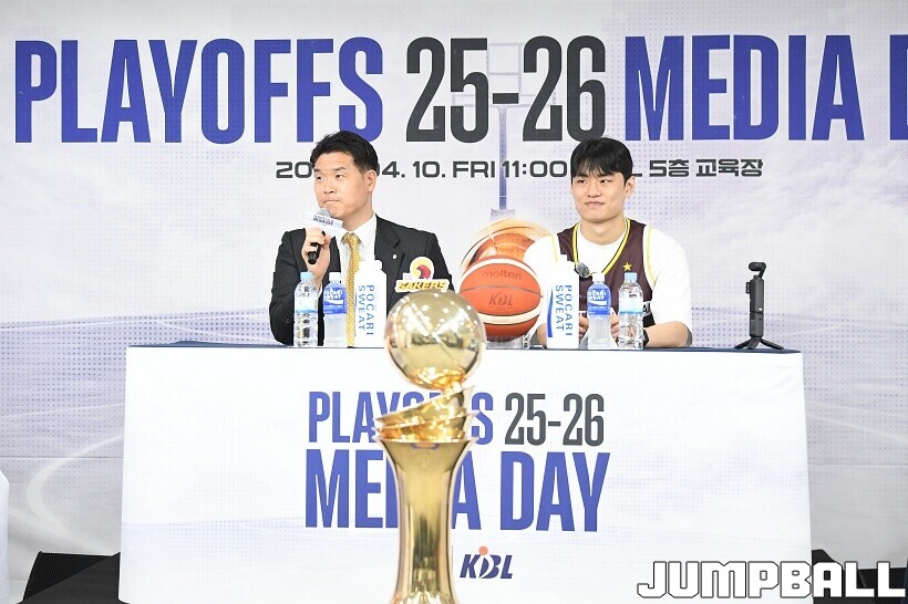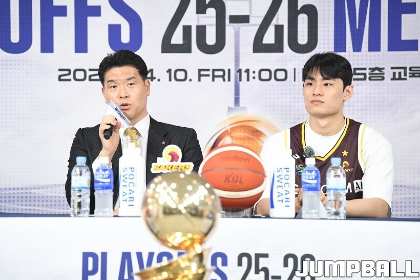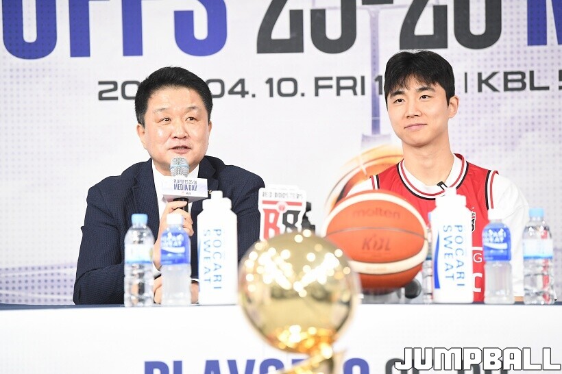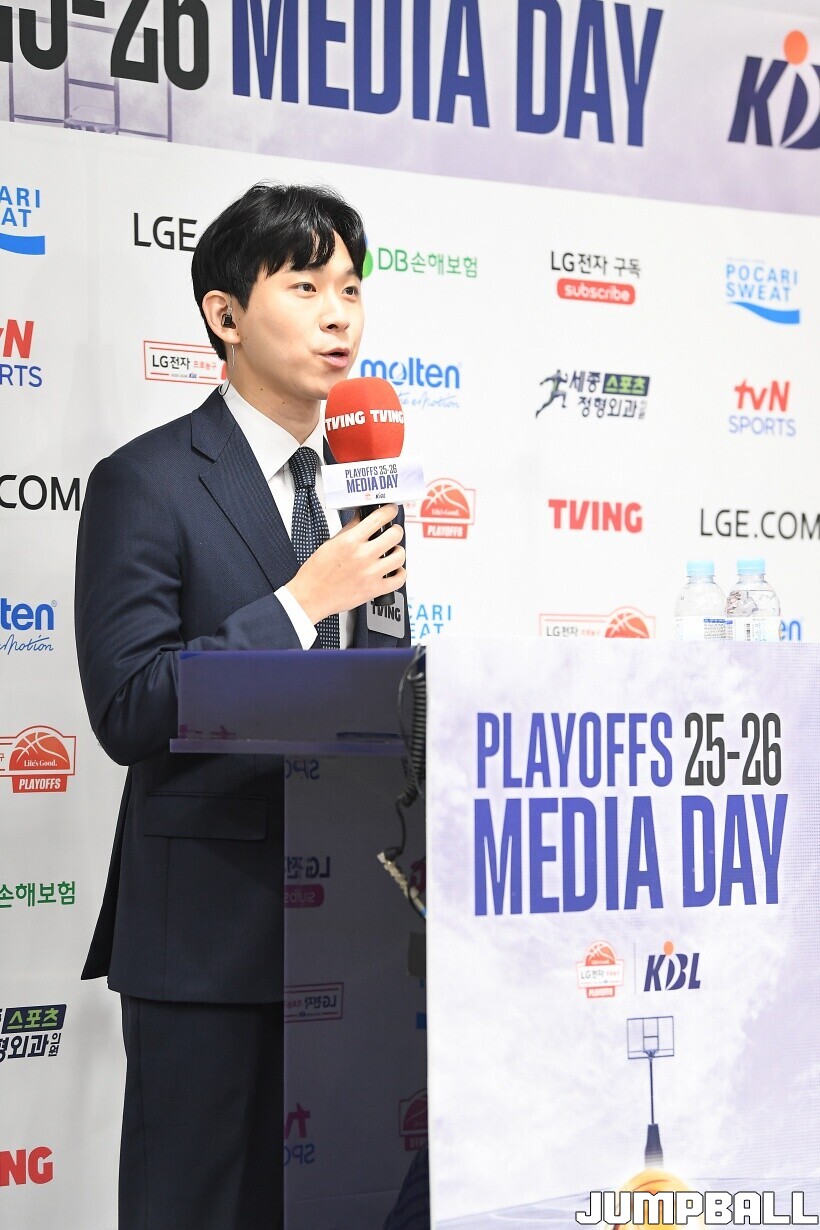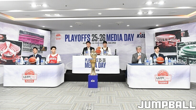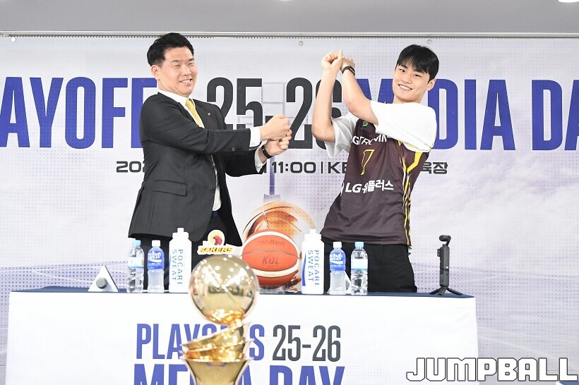 [점프볼=논현/유용우 기자] 10일 KBL 센터 5층 교육장에서 열린 2025-2026 LG전자 프로농구 플레이오프 미디어데이, 1, 2부로 순서를 나눠서 진행된 미디어데이엔 LG 유기상 조상현 감독, 정관장 박지훈 유도훈 감독, 소노 이정현 손창환 감독, KCC 허웅 이상민 감독, SK 에디 다니엘 전희철 감독, DB 이선 알바노 김주성 감독이 참석하여 자리를 빛냈다.