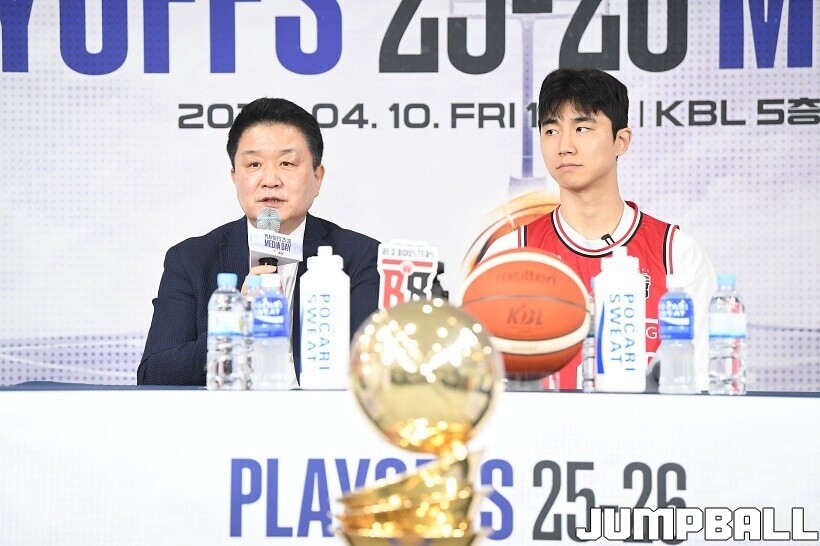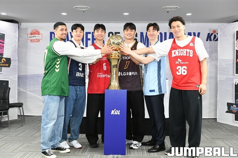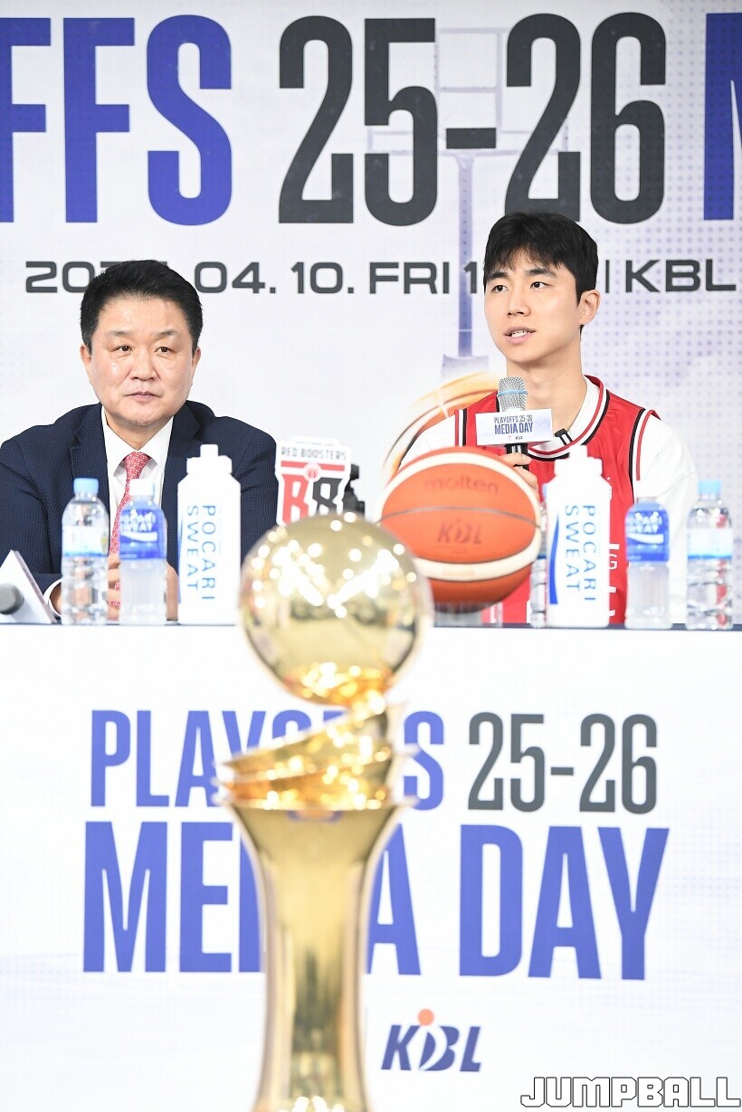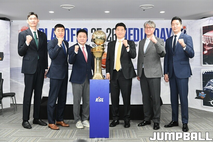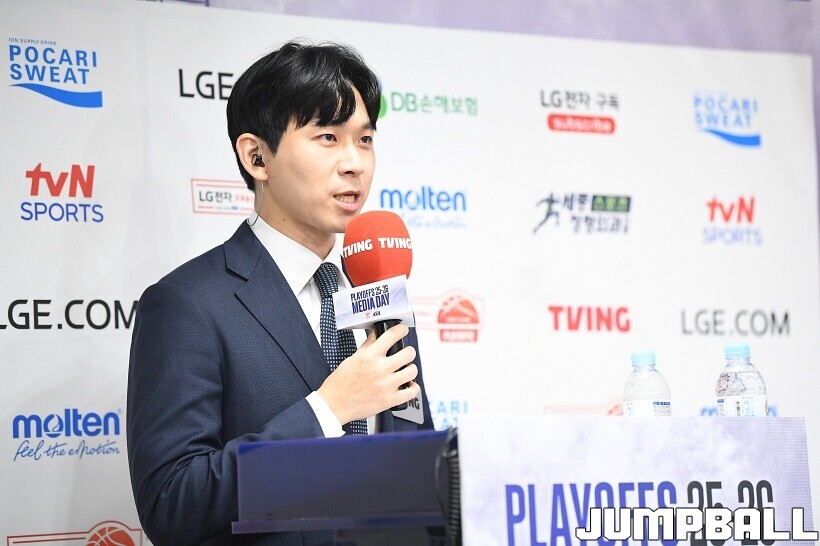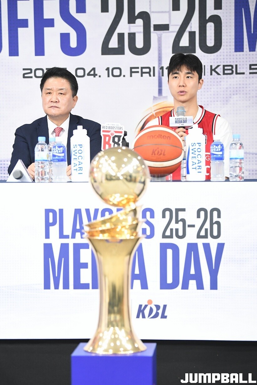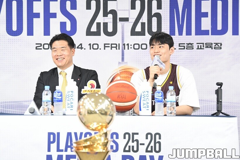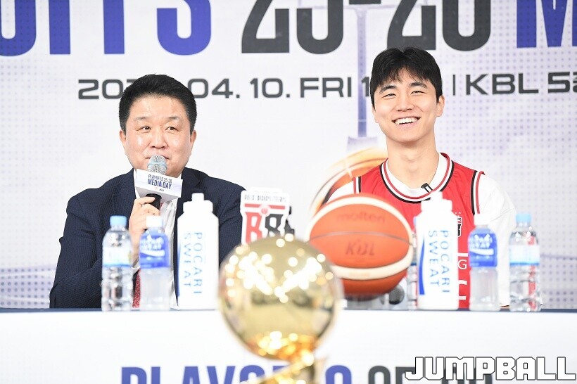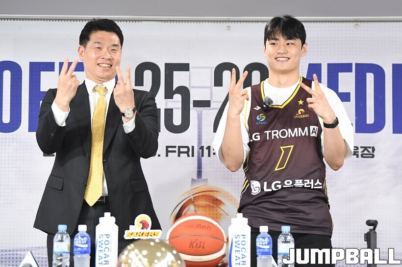 [점프볼=논현/유용우 기자] 10일 KBL 센터 5층 교육장에서 열린 2025-2026 LG전자 프로농구 플레이오프 미디어데이, 1, 2부로 순서를 나눠서 진행된 미디어데이엔 LG 유기상 조상현 감독, 정관장 박지훈 유도훈 감독, 소노 이정현 손창환 감독, KCC 허웅 이상민 감독, SK 에디 다니엘 전희철 감독, DB 이선 알바노 김주성 감독이 참석하여 자리를 빛냈다.