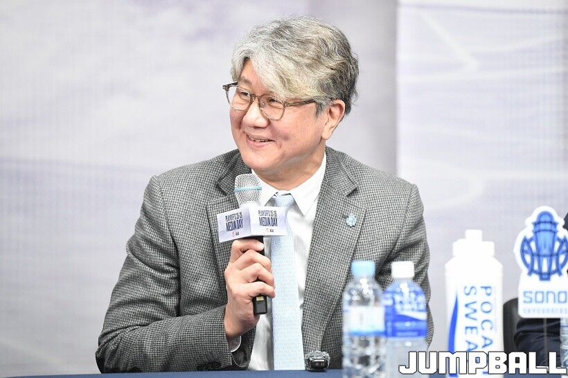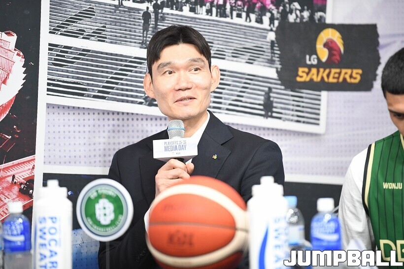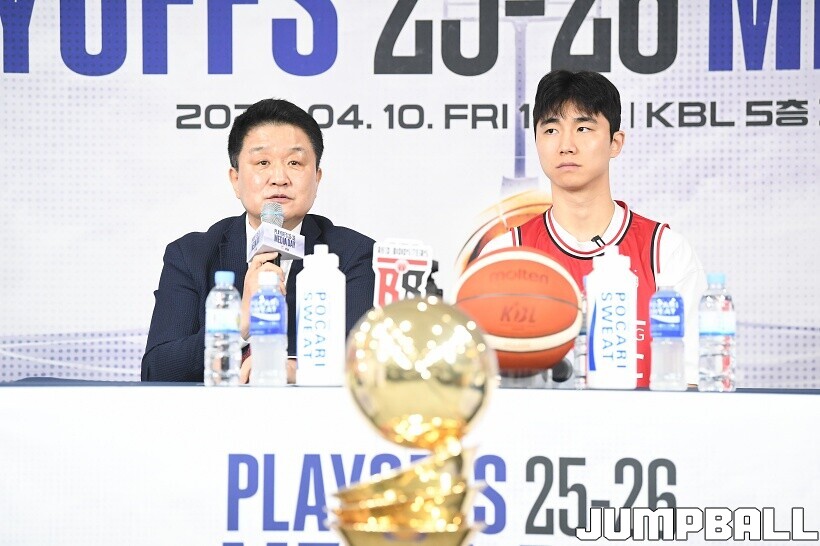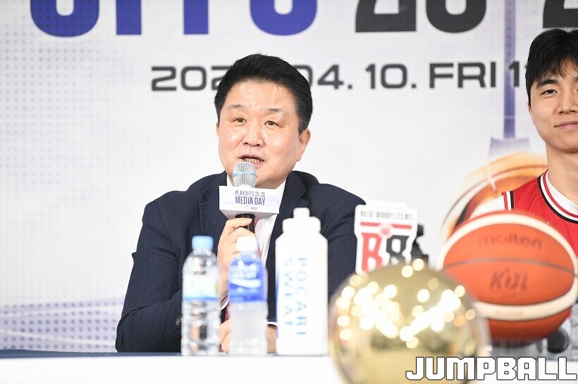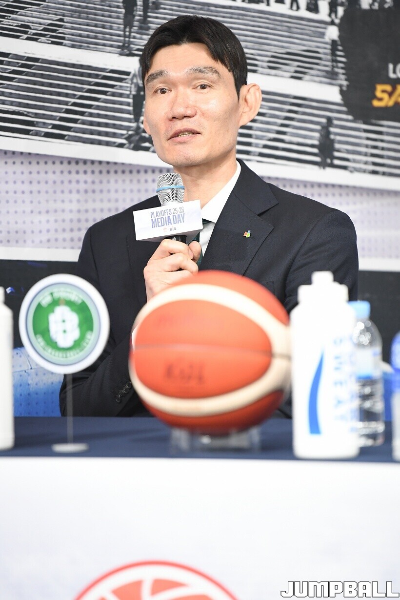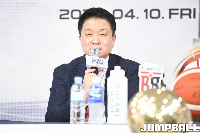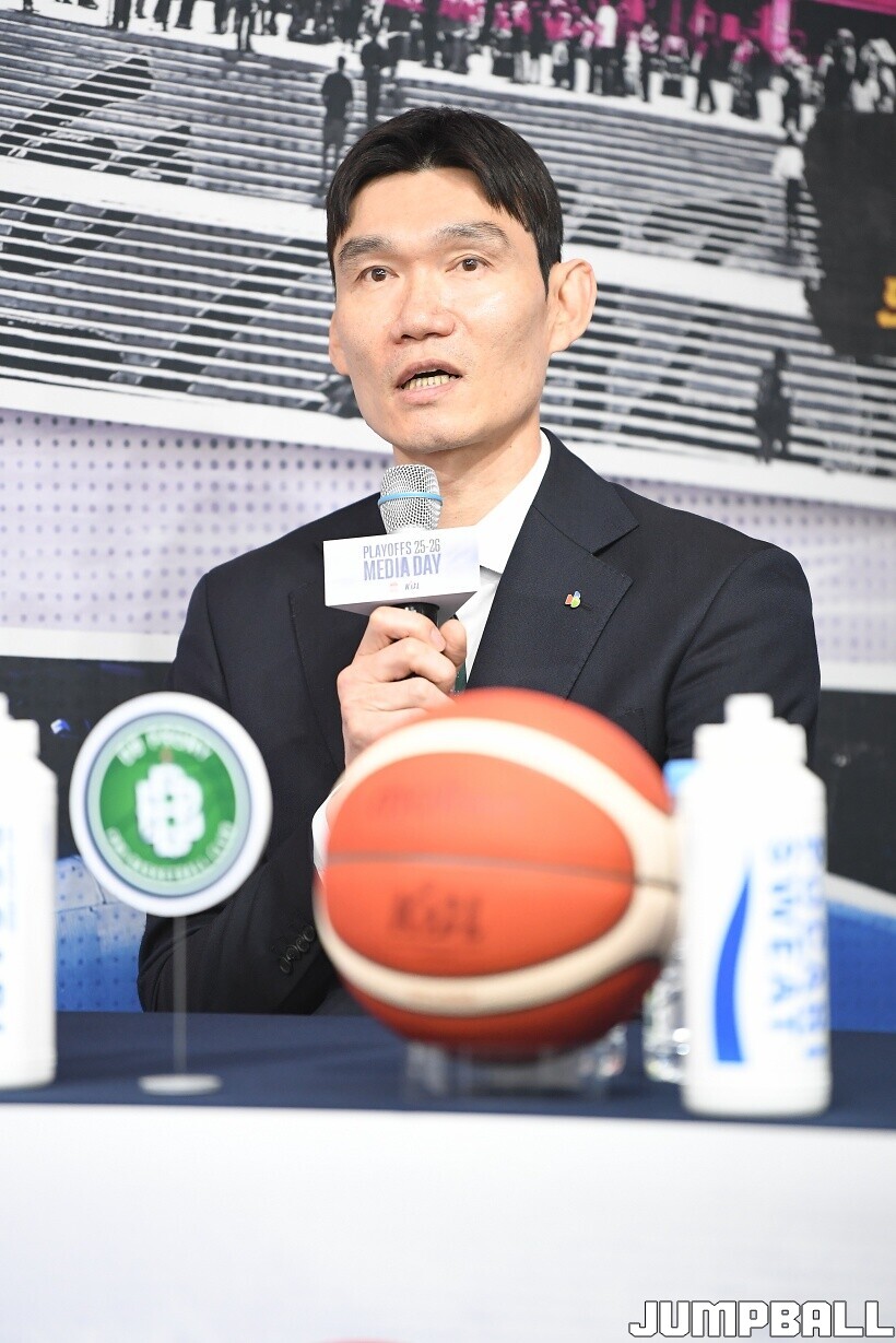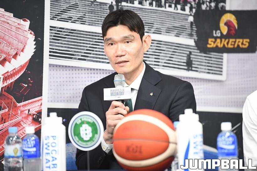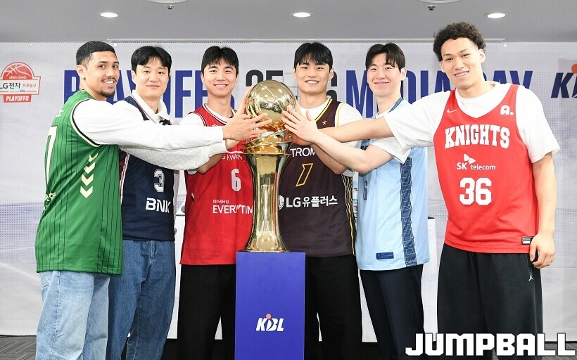 [점프볼=논현/유용우 기자] 10일 KBL 센터 5층 교육장에서 열린 2025-2026 LG전자 프로농구 플레이오프 미디어데이, 1, 2부로 순서를 나눠서 진행된 미디어데이엔 LG 유기상 조상현 감독, 정관장 박지훈 유도훈 감독, 소노 이정현 손창환 감독, KCC 허웅 이상민 감독, SK 에디 다니엘 전희철 감독, DB 이선 알바노 김주성 감독이 참석하여 자리를 빛냈다.