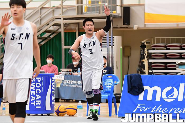 [점프볼=양산/박상혁 기자] 26일 양산실내체육관에서 열린 'KB국민은행 LiiV 3X3 코리아투어 2020 양산대회' 2일차 경기, 남자오픈부 S.T.N 이동윤이 환호하고 있다.