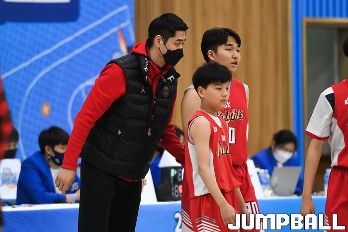 [점프볼=양구/박상혁 기자] 4일 양구청춘체육관에서 열린 2020-2021 KBL 유소년 주말리그 SK와 삼성의 U11 경기, SK 김동욱 코치가 선수들에게 지시를 내리고 있다.