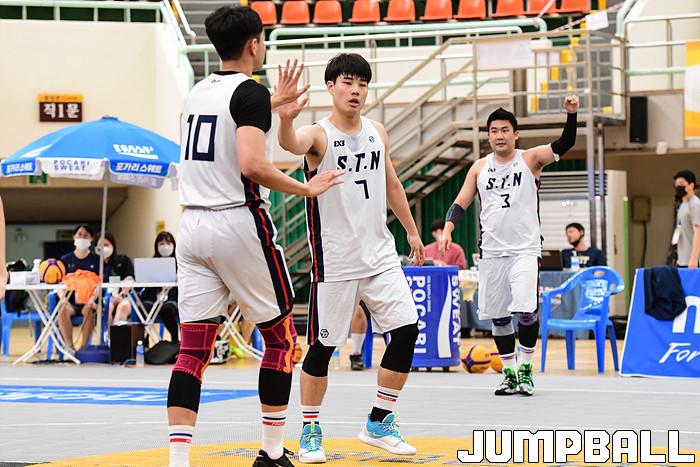 [점프볼=양산/박상혁 기자] 26일 양산실내체육관에서 열린 'KB국민은행 LiiV 3X3 코리아투어 2020 양산대회' 2일차 경기, 남자오픈부 S.T.N이 승리후 환호하고 있다.