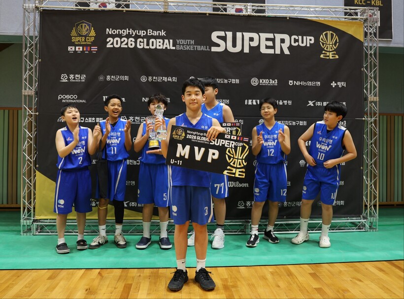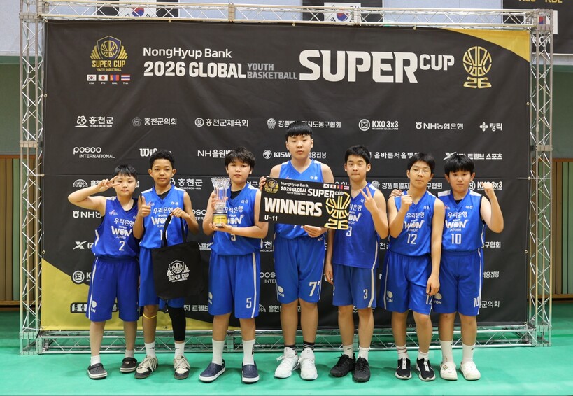 홍현재 원장이 이끄는 아산 우리은행 주니어 농구교실은 지난 17일과 18일 양일간 강원도 홍천 일대에서 열린 ‘NH농협은행 2026 홍천 글로벌 유소년 농구 슈퍼컵’ U11부에서 우승컵을 들어올렸다.