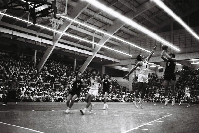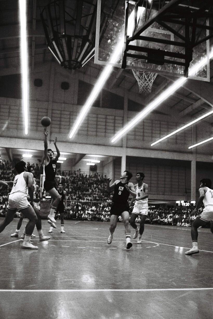 | ▲한국은 예선에서 이란, 필리핀, 홍콩을 물리치고 결승리그에 올랐다. 당시 아시아 강호로 군림했던 필리핀과 대결이 고비였는데 결국 2점 차로 간신히 이겼다. 중거리슛을 시도하는 8번이 유희형이다. |
