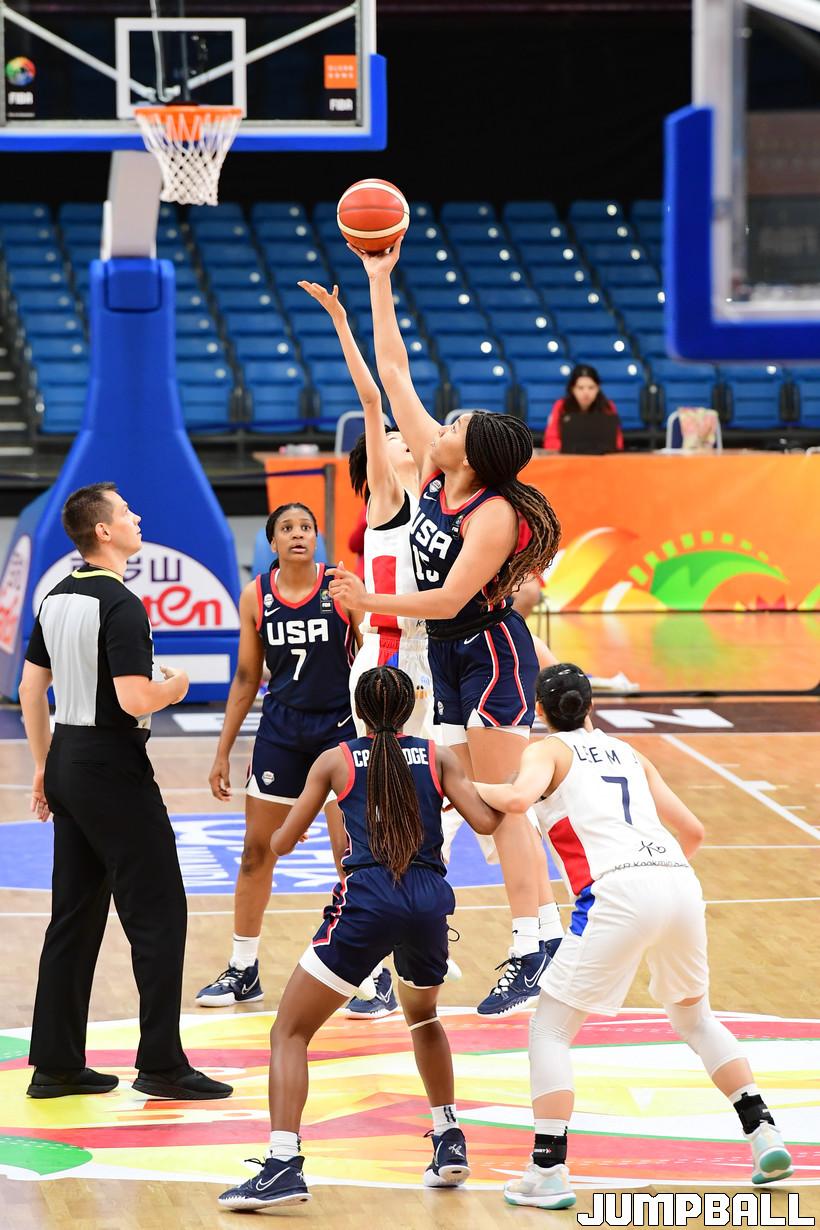 13일 헝가리 데브레첸 포닉스 아레나에서 열린 2022 FIBA U17 여자농구월드컵 한국과 미국의 경기, 점프볼로 경기가 시작되었다.