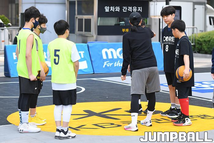 [점프볼=서울/박상혁 기자] 11일 서울신문사앞 특설코트에서 KB국민은행 LIIV M KBA 3X3 코리아투어 2일차 경기가 열렸다. 경기 시작전 선수들이 심판의 이야기를 듣고 있다.