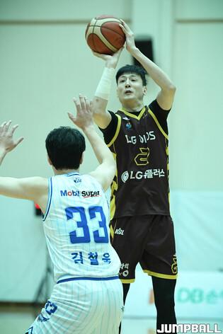 [점프볼=이천/유용우 기자] 14일 이천LG챔피언스파크에서 열린 2024-2025 KBL D리그 대구 한국가스공사와 창원 LG의 경기, LG 장태빈이 수비를 돌파하고 있다.