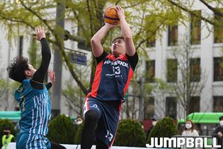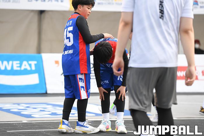 [점프볼=서울/박상혁 기자] 11일 서울신문사앞 특설코트에서 KB국민은행 LIIV M KBA 3X3 코리아투어 2일차 경기가 열렸다. 초등부 PEC가 팀 동료 선수를 격려하고 있다.