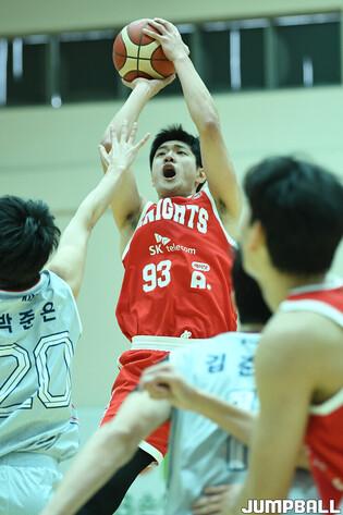 [점프볼=이천/유용우 기자] 17일 이천 LG챔피언스파크에서 열린 2024-2025 KBL D리그 서울 SK와 울산 현대모비스의 경기, 현대모비스 김준일이 슛을 시도하고 있다.