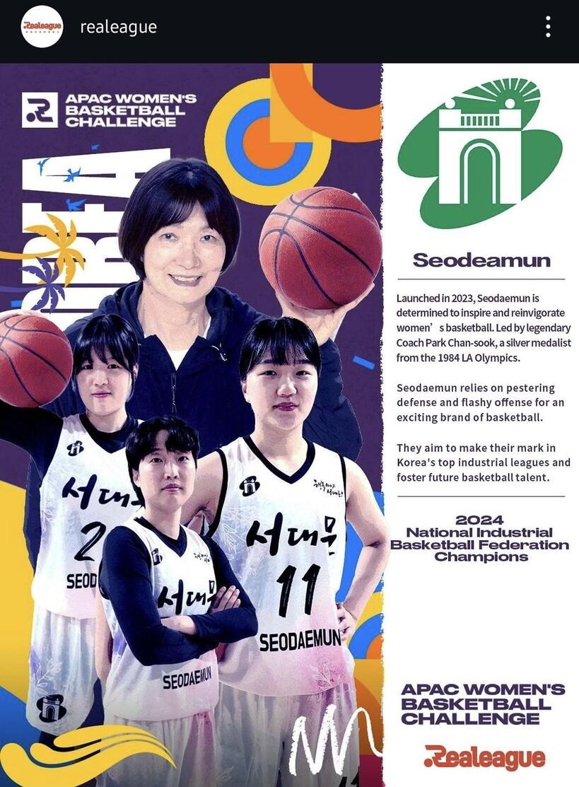 서대문구청은 오는 27일부터 30일까지 중국 하이난성 하이커우에서 열리는 아시아 태평양 여자 농구 챌린지 대회(APAC WOMEN'S BASKETBALL CHALLENGE, AWBC)에 한국 대표로 출전한다.