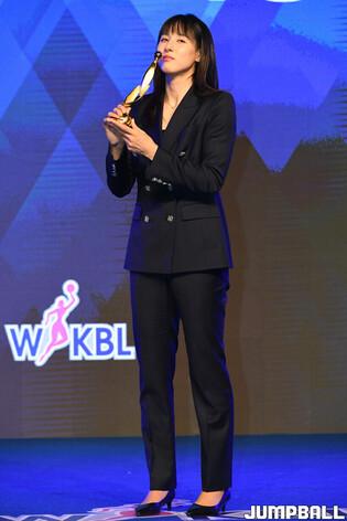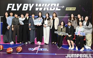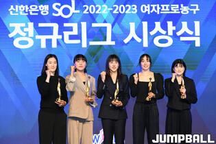 6일 여의도 63컨벤션센터 그랜드볼룸에서 열린 신한은행 SOL 2022-2023 여자프로농구 정규리그 시상식, 신한은행 변소정과 이유진이 포즈를 취하고 있다.