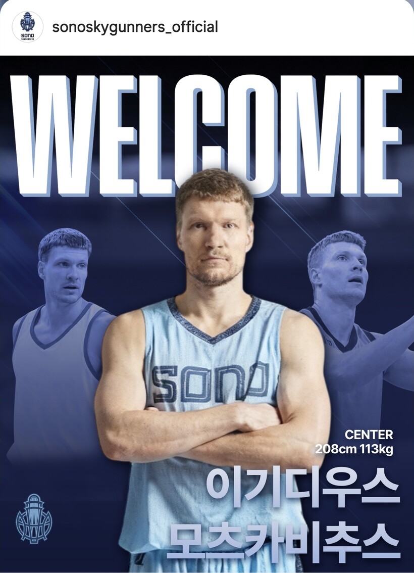 KBL은 29일 고양 소노 새 외국선수 이기디우스 모츠카비추스의 선수 등록을 알렸다. 시즌 대체이며, 등번호는 27번이다.