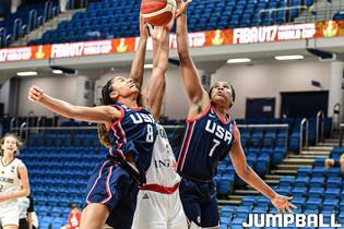 13일 헝가리 데브레첸 포닉스 아레나에서 열린 2022 FIBA U17 여자농구월드컵 한국과 미국의 경기, U17 여자농구대표팀 조민하가 스틸을 시도하고 있다.