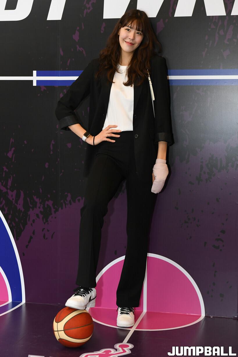 6일 여의도 63컨벤션센터 그랜드볼룸에서 열린 신한은행 SOL 2022-2023 여자프로농구 정규리그 시상식, KB스타즈 박지수가 포토월에서 사진 촬영을 하고 있다.