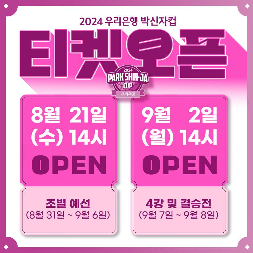 WKBL은 19일 ”오는 31일부터 9월 8일까지 충남 아산 이순신체육관에서 열리는 ‘2024 우리은행 박신자컵’의 티켓예매 일정이 확정됐다“라고 밝혔다.