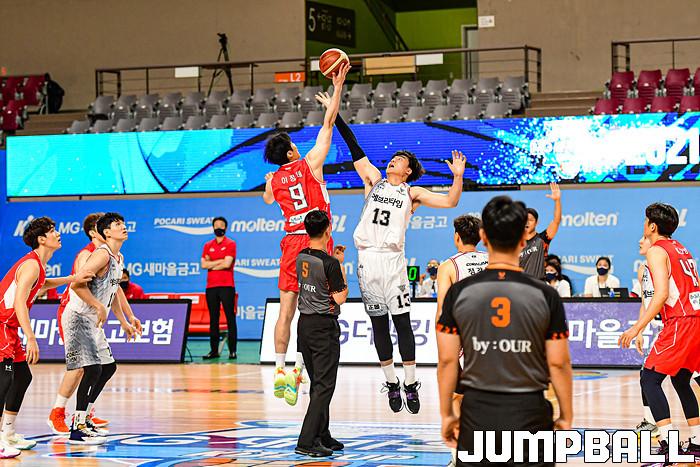 14일 경상북도 상주시 상주실내체육관에서 열린 2021 MG새마을금고 KBL컵 대회 고양 오리온과 안양 KGC인삼공사의 경기, 점프볼로 경기가 시작되었다.
