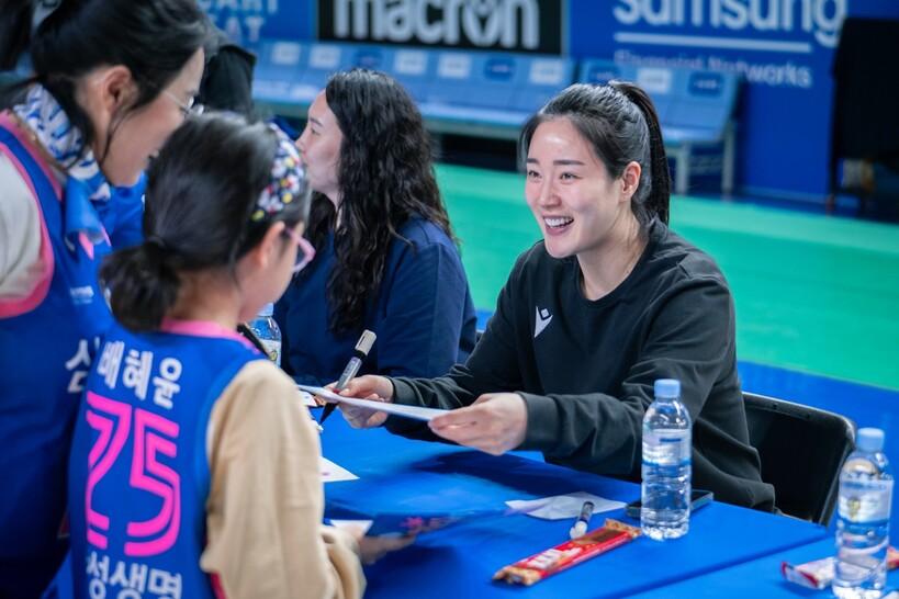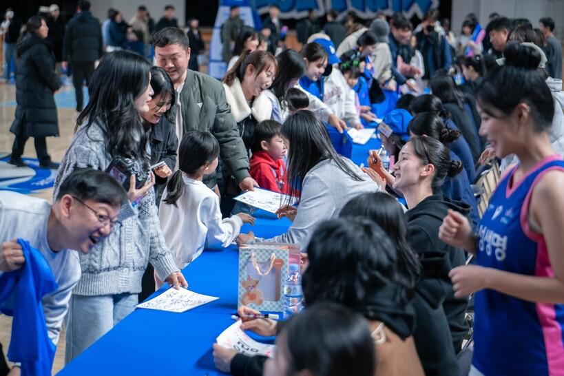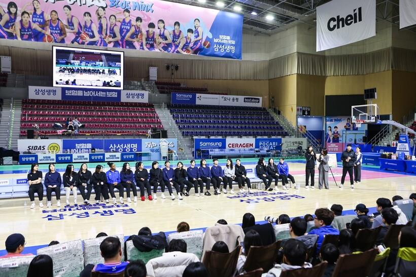 삼성생명은 2일 용인체육관에서 열린 하나은행 2024~2025 여자프로농구 정규리그 부천 하나은행과의 경기 후 팬미팅과 사인회를 진행했다.