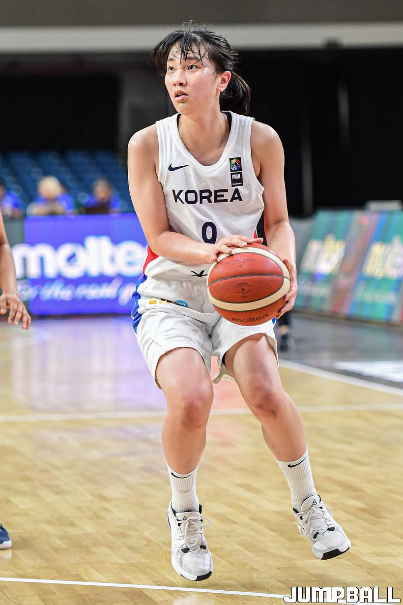 13일 헝가리 데브레첸 포닉스 아레나에서 열린 2022 FIBA U17 여자농구월드컵 한국과 미국의 16강 경기, U17 여자농구대표팀 정현이 슛을 시도하고 있다.
