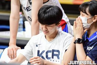 13일 헝가리 데브레첸 포닉스 아레나에서 열린 2022 FIBA U17 여자농구월드컵 한국과 미국의 16강 경기, U17 여자농구대표팀 고현지가 팀 동료를 기다리고 있다.
