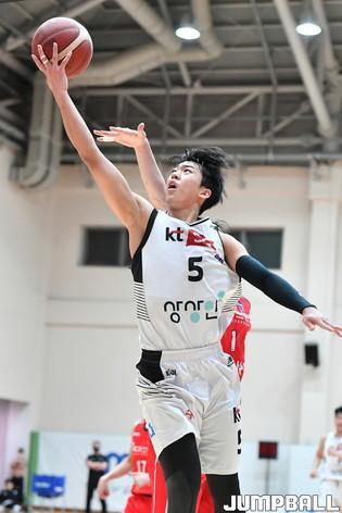 29일 이천 LG챔피언스파크 실내농구장에서 열린 2021-2022 KBL D리그 KT와 LG의 경기. KT 김민욱이 리바운드를 잡아내고 있다.