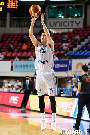 [점프볼=울산/유용우 기자] 24일 울산 동천체육관에서 열린 2020-2021 현대모비스 프로농구 울산 현대모비스와 안양 KGC인삼공사의 4강 플레이오프 2차전, 현대모비스 전준범이 3점슛을 던지고 있다.