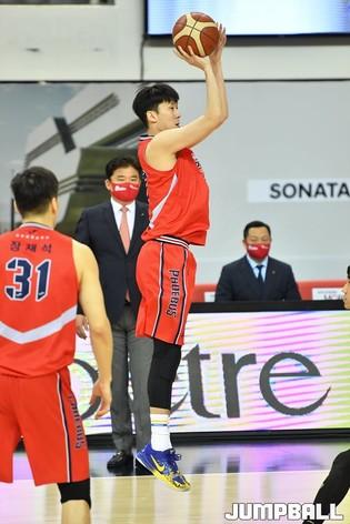 [점프볼=울산/유용우 기자] 24일 울산 동천체육관에서 열린 2020-2021 현대모비스 프로농구 울산 현대모비스와 안양 KGC인삼공사의 4강 플레이오프 2차전, KGC 전성현이 3점슛을 던지고 있다.