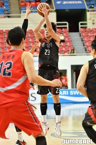 [점프볼=울산/유용우 기자] 24일 울산 동천체육관에서 열린 2020-2021 현대모비스 프로농구 울산 현대모비스와 안양 KGC인삼공사의 4강 플레이오프 2차전, 현대모비스 김민구가 슛을 시도하고 있다.