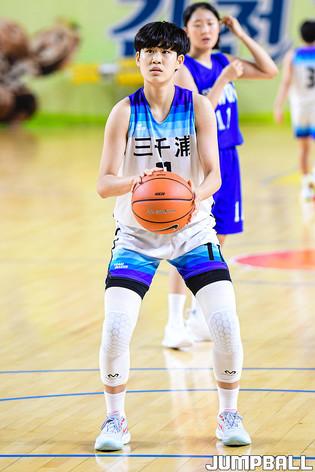 22일 경상북도 김천실내체육관에서 열린 2021 연맹회장기 전국남녀중고농구대회 김천대회 여고부 수원여고와 삼천포여고 결승전 경기, 수원여고 이수하가 레이업슛을 시도하고 있다.