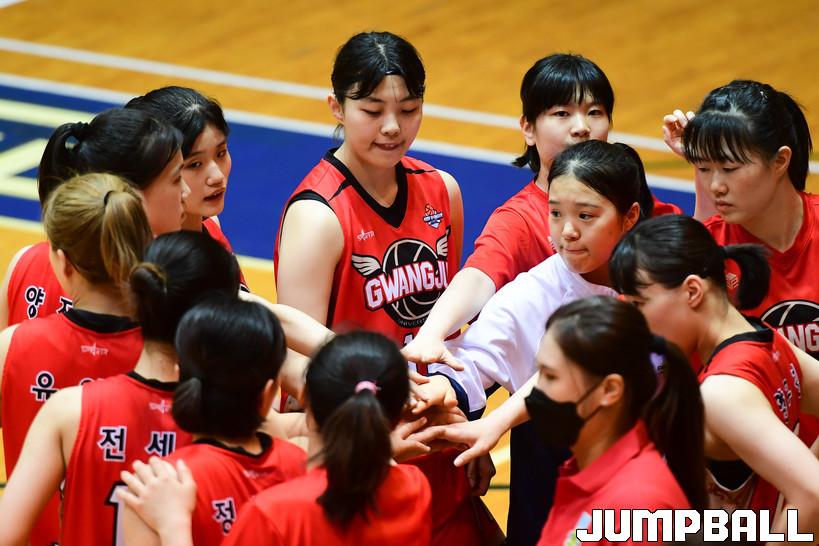 28일 수원대 체육관에서 열린 2022 KUSF 대학농구 U-리그 수원대와 광주대의 경기, 광주대 선수들이 화이팅을 외치고 있다.