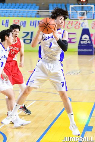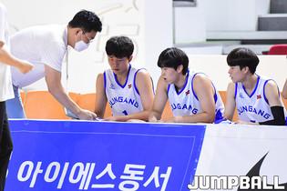 19일 김천실내체육관에서 열린 2021 연맹회장기 전국남녀중고농구 김천대회 남고부 홍대부고와 부산중앙고의 경기, 부산중앙고 강지훈이 레이업슛을 시도하고 있다.